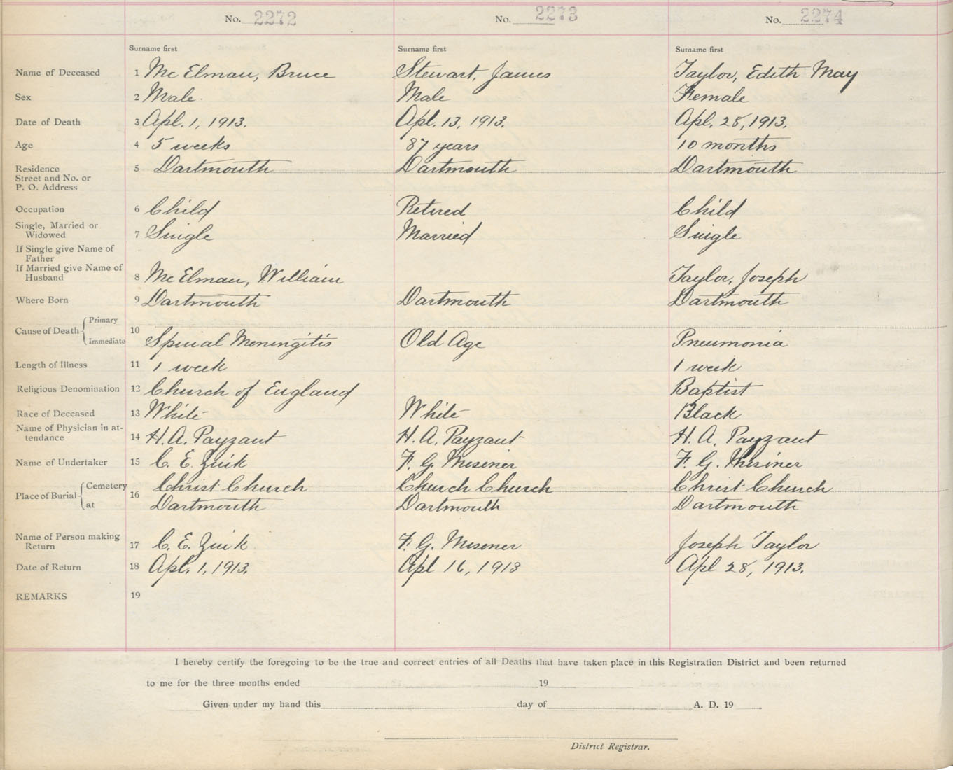 Death Registration: Year: 1913 book: 9 page: 379 number: 2272