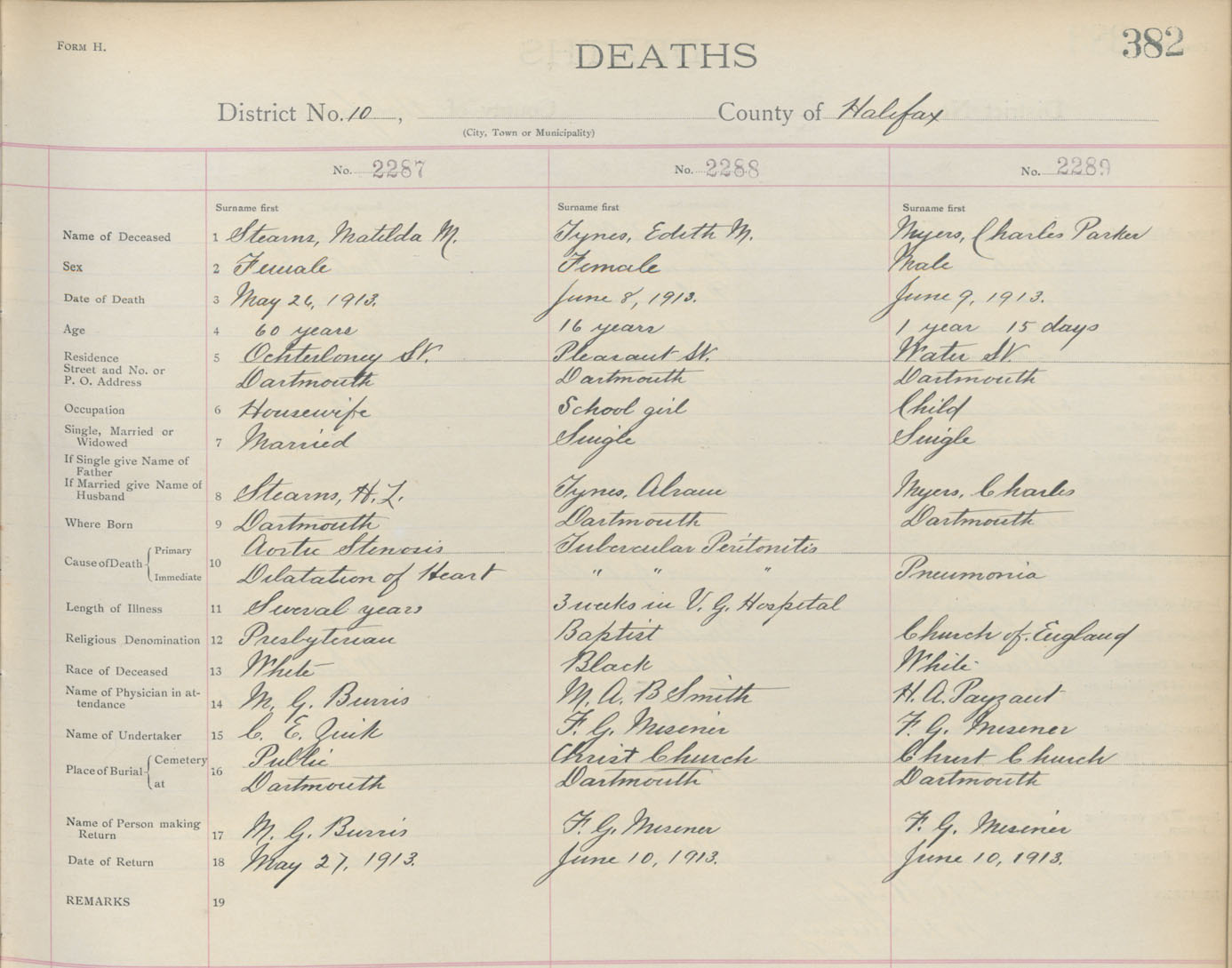 Death Registration: Year: 1913 book: 9 page: 382 number: 2287