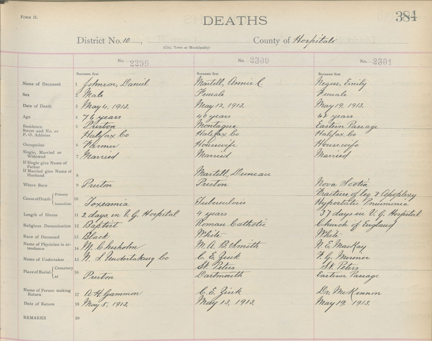 Death Registration: Year: 1913 book: 9 page: 384 number: 2299