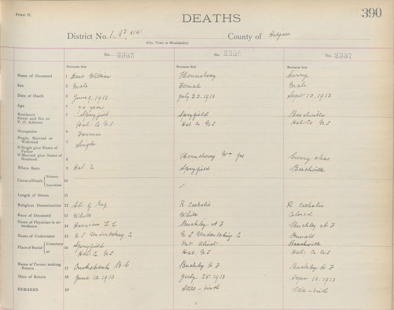 Death Registration: Year: 1911 book: 9 page: 390 number: 2335