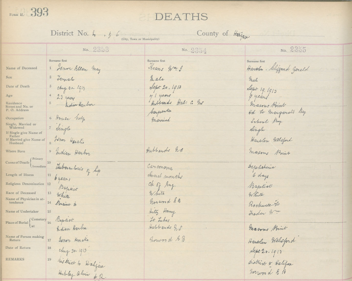 Death Registration: Year: 1913 book: 9 page: 393 number: 2353