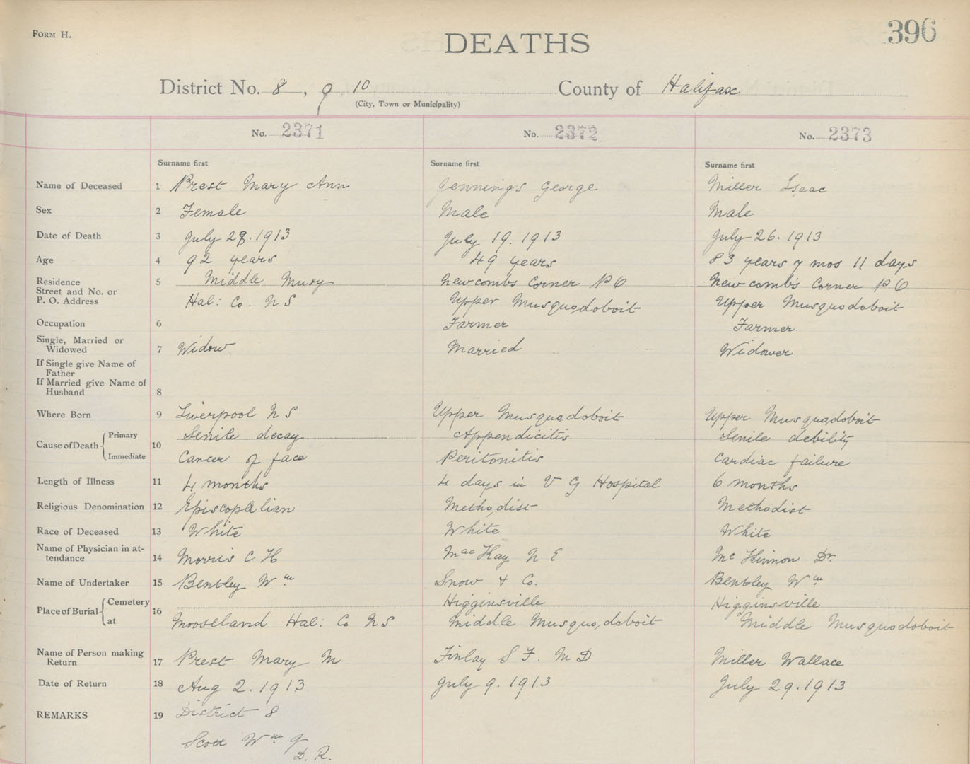 Death Registration: Year: 1913 book: 9 page: 396 number: 2371