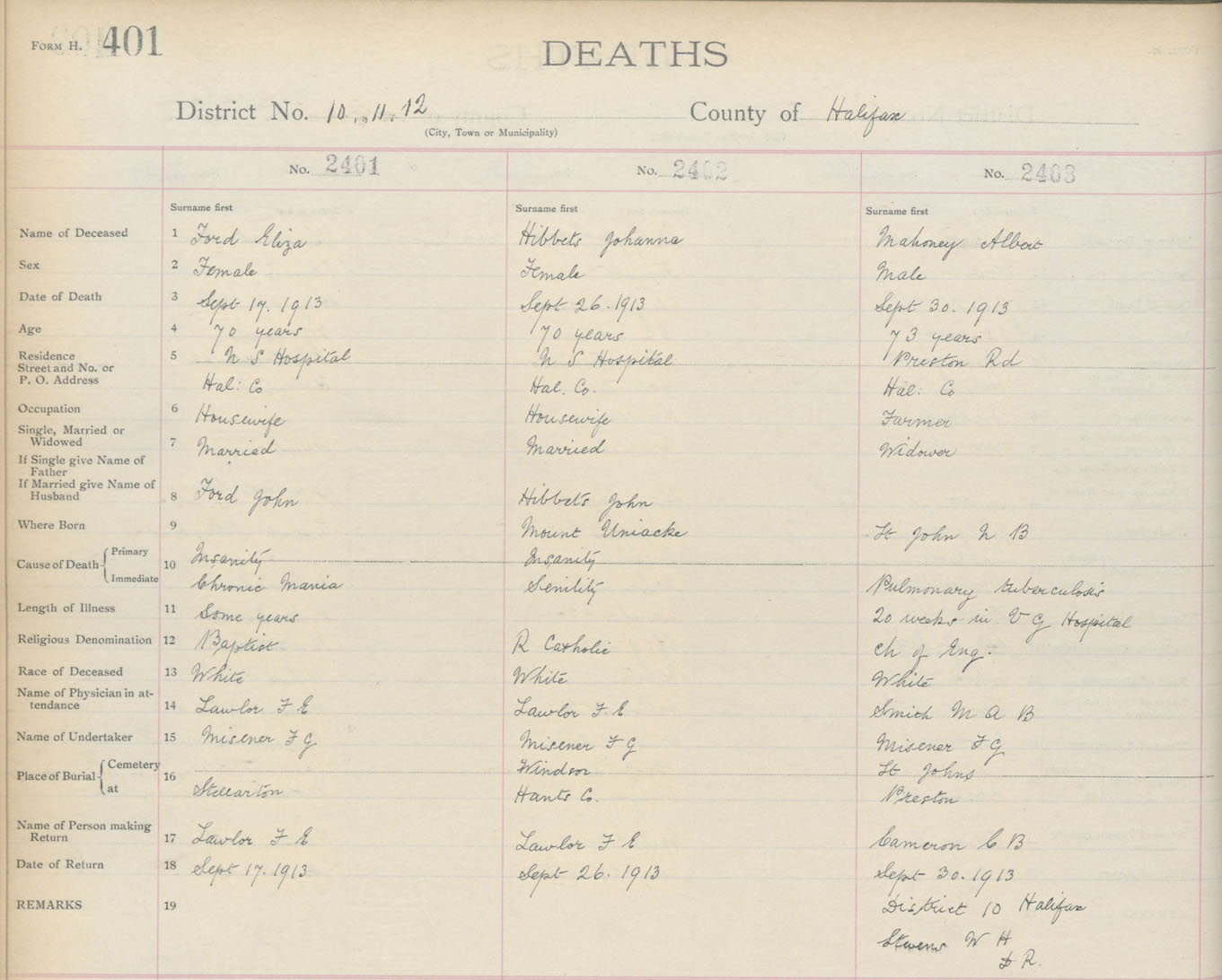 Death Registration: Year: 1913 book: 9 page: 401 number: 2401
