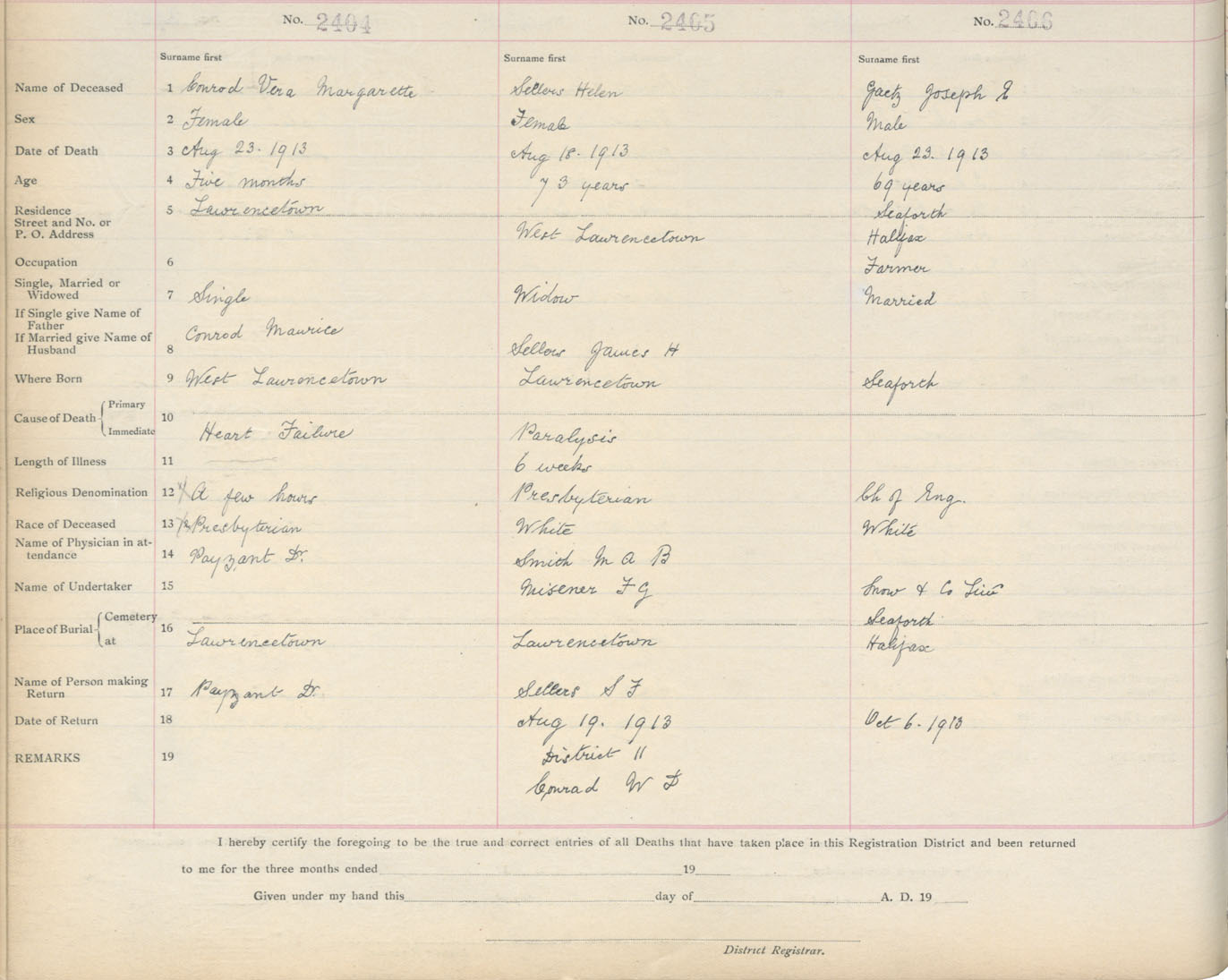 Death Registration: Year: 1913 book: 9 page: 401 number: 2404