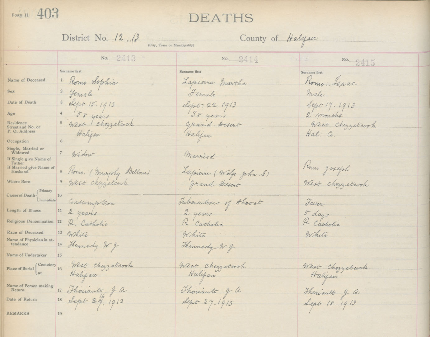 Death Registration: Year: 1913 book: 9 page: 403 number: 2413