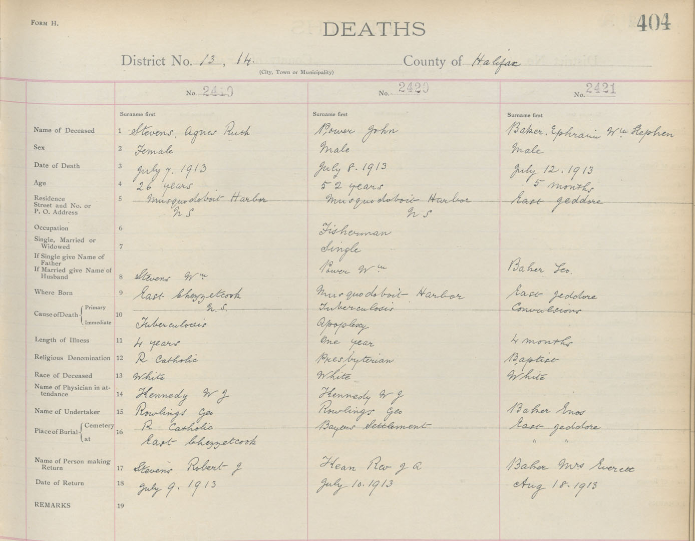 Death Registration: Year: 1913 book: 9 page: 404 number: 2419