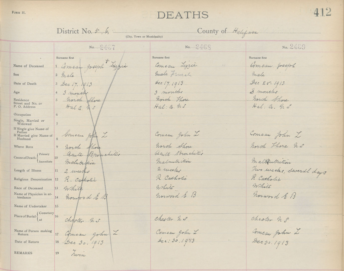 Death Registration: Year: 1913 book: 9 page: 412 number: 2468