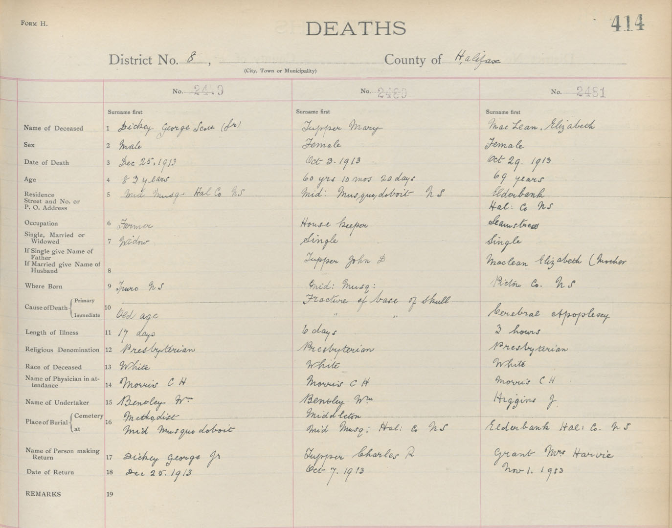 Death Registration: Year: 1913 book: 9 page: 414 number: 2479