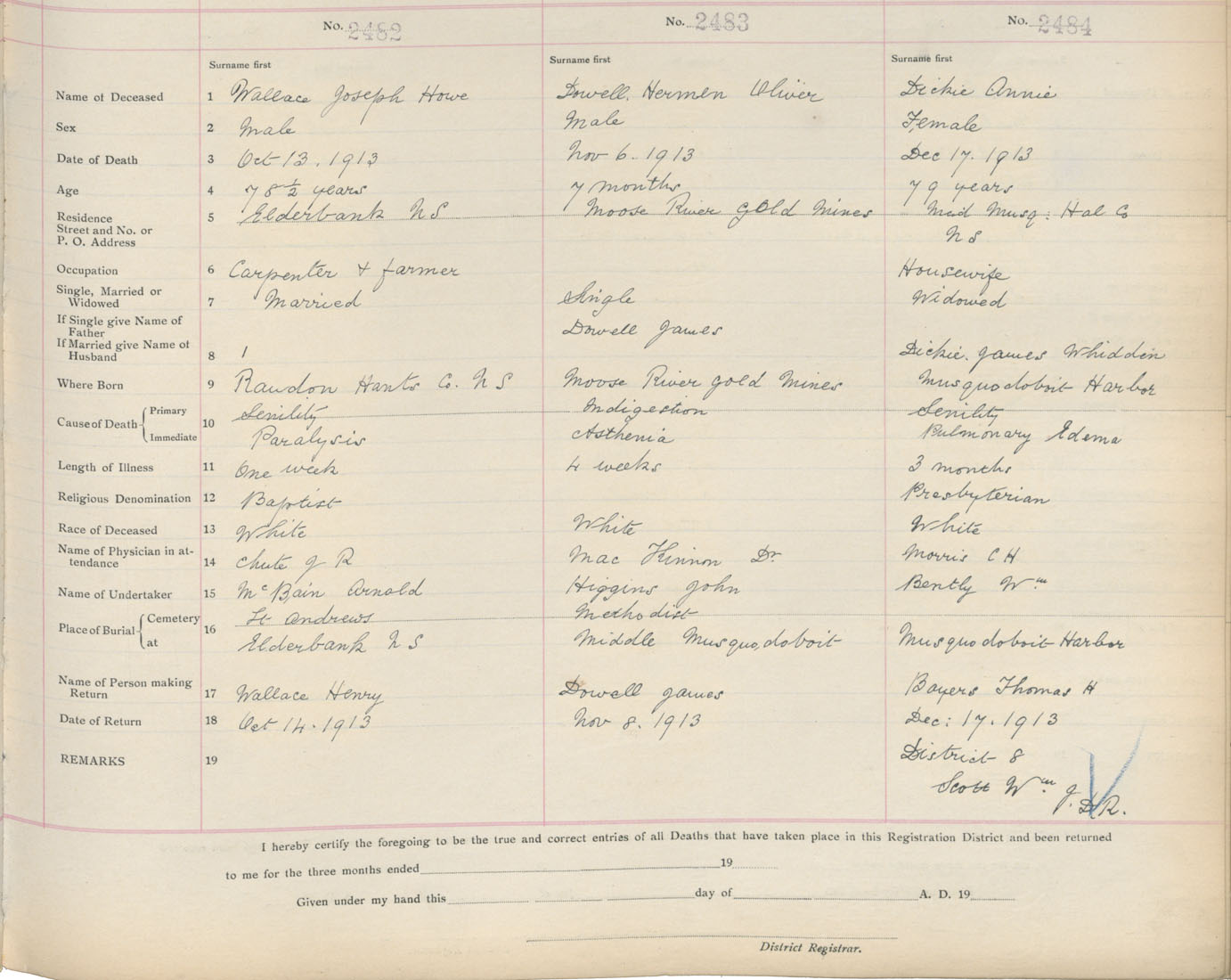 Death Registration: Year: 1913 book: 9 page: 414 number: 2482