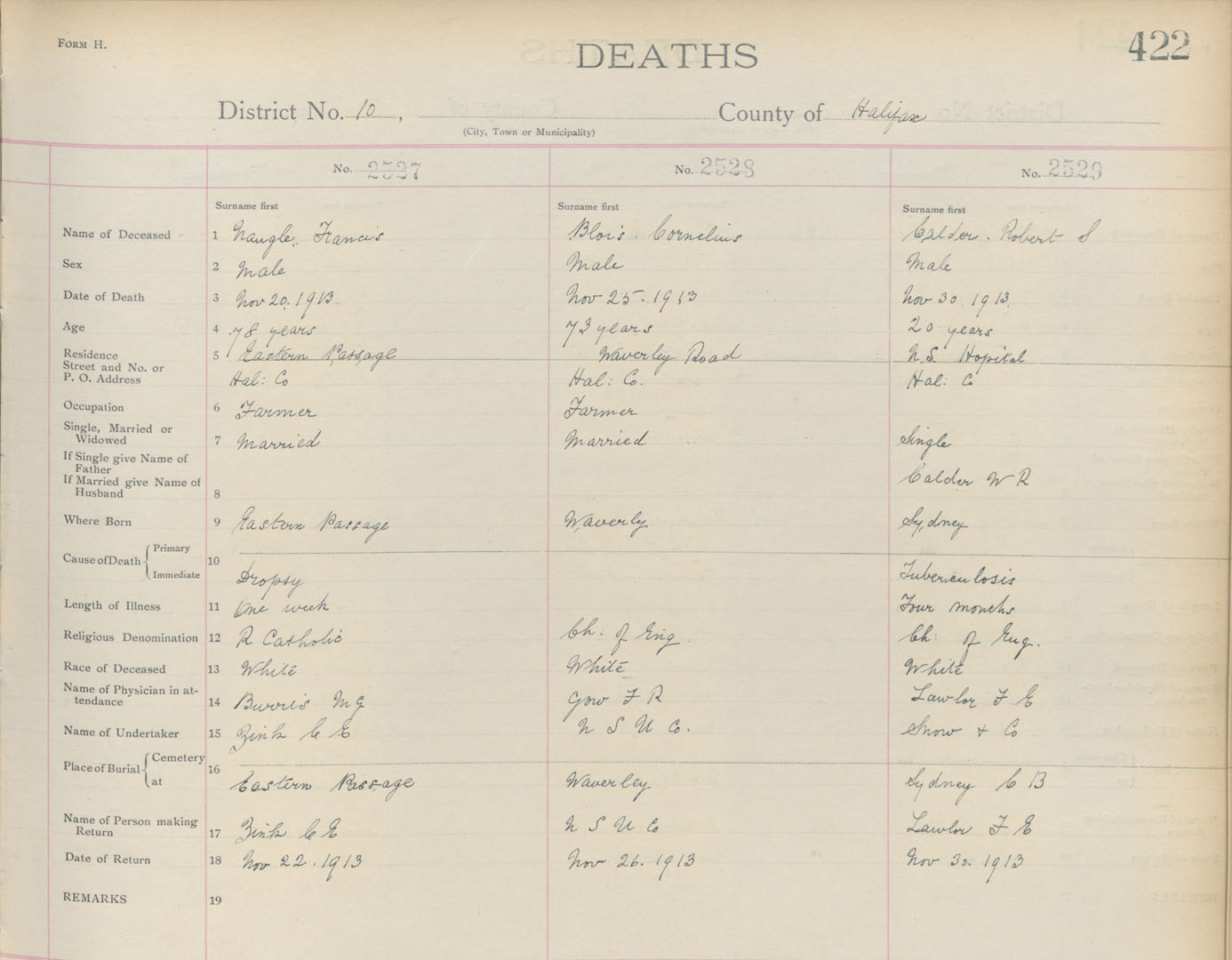 Death Registration: Year: 1913 book: 9 page: 422 number: 2527