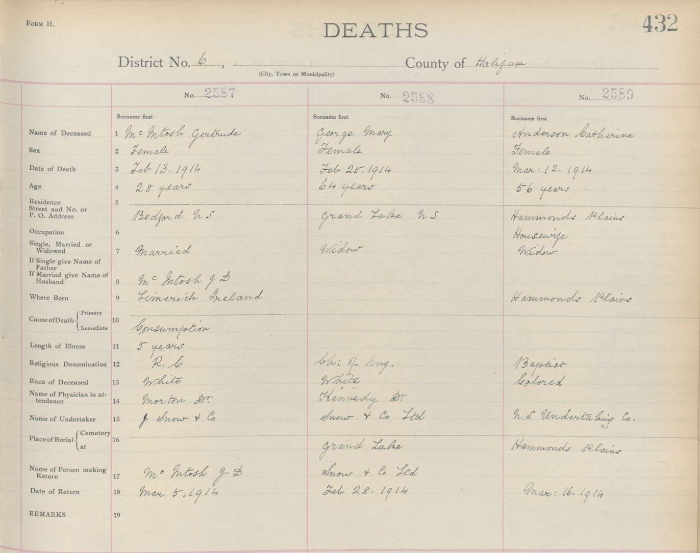 Death Registration: Year: 1914 book: 9 page: 432 number: 2587
