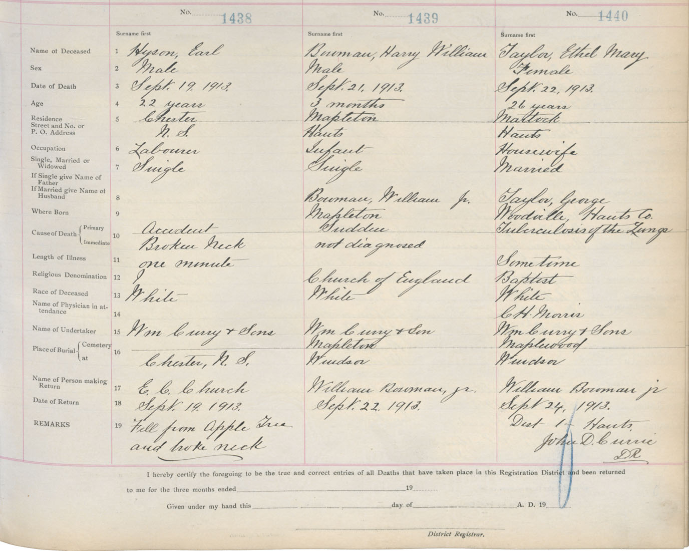 Death Registration: Year: 1913 book: 10 page: 240 number: 1440
