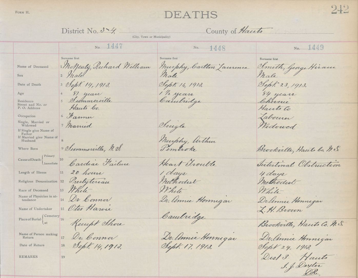 Death Registration: Year: 1913 book: 10 page: 242 number: 1449