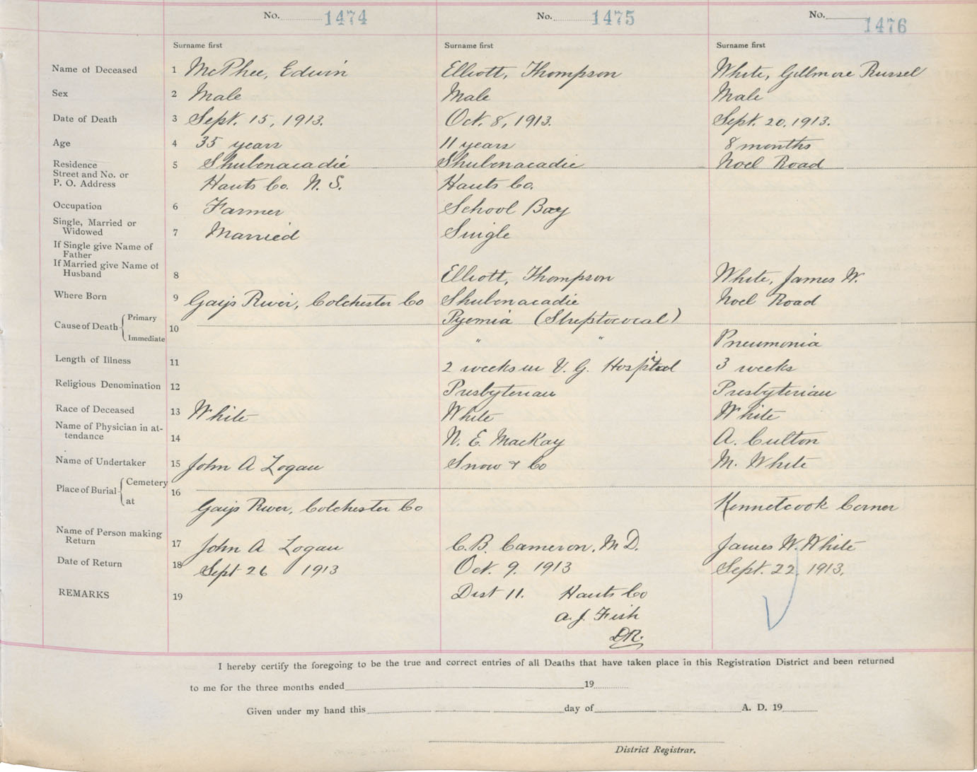 Death Registration: Year: 1913 book: 10 page: 246 number: 1476