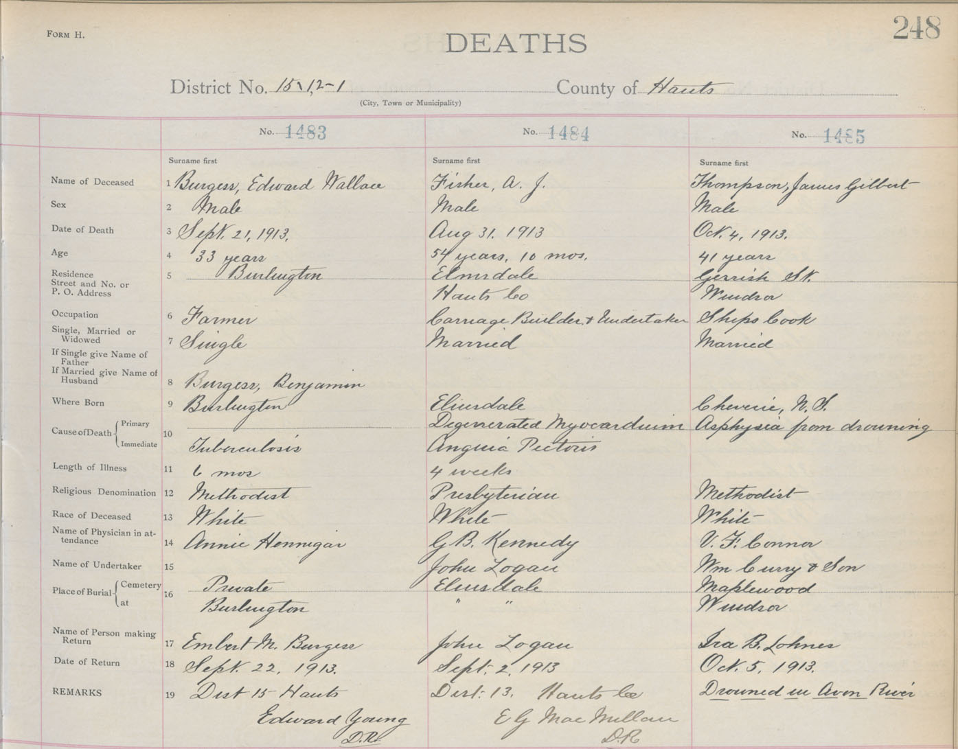 Death Registration: Year: 1913 book: 10 page: 248 number: 1485