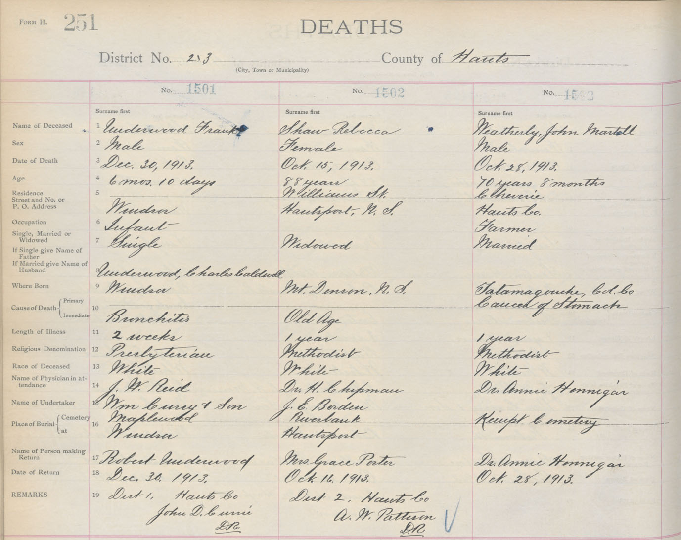 Death Registration: Year: 1913 book: 10 page: 251 number: 1503