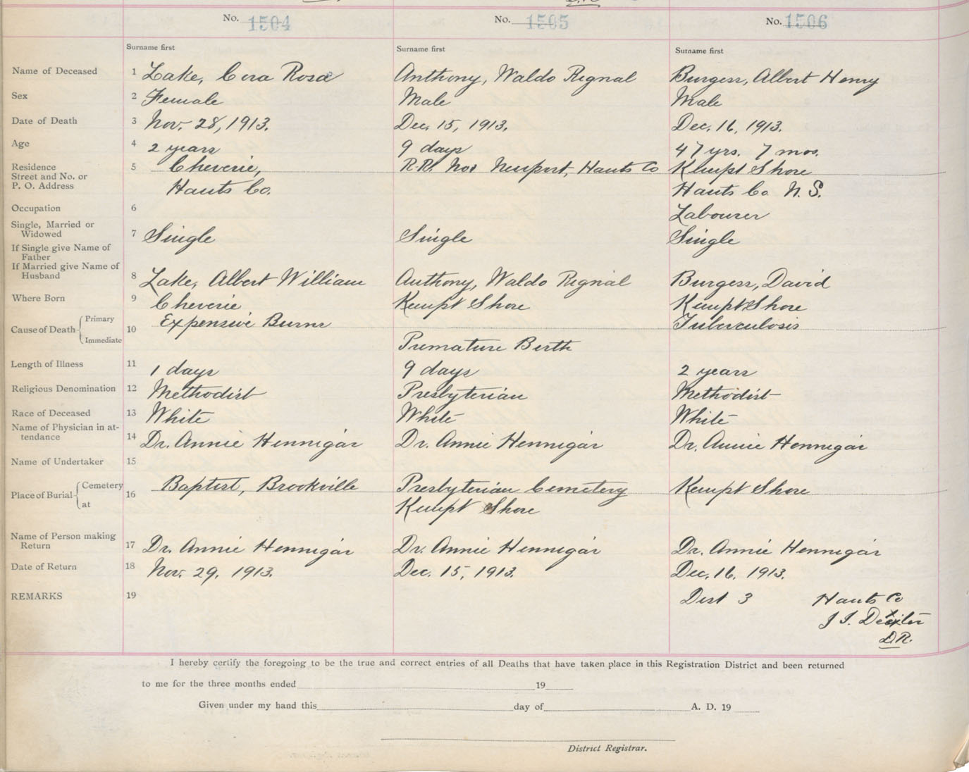 Death Registration: Year: 1913 book: 10 page: 251 number: 1506
