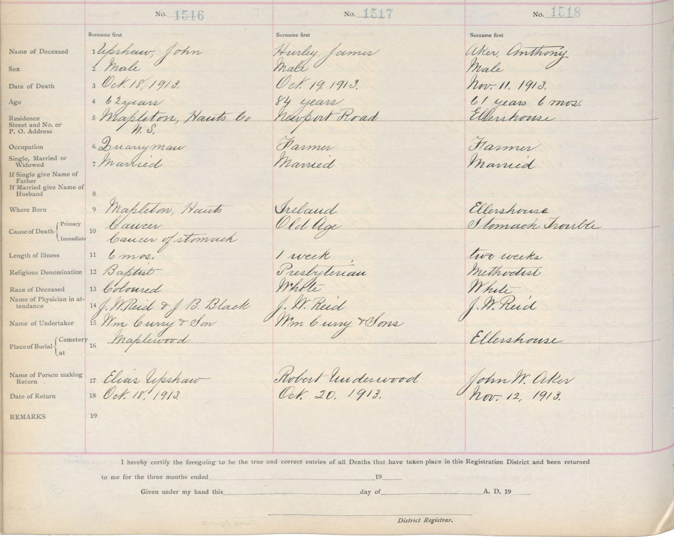Death Registration: Year: 1913 book: 10 page: 253 number: 1518