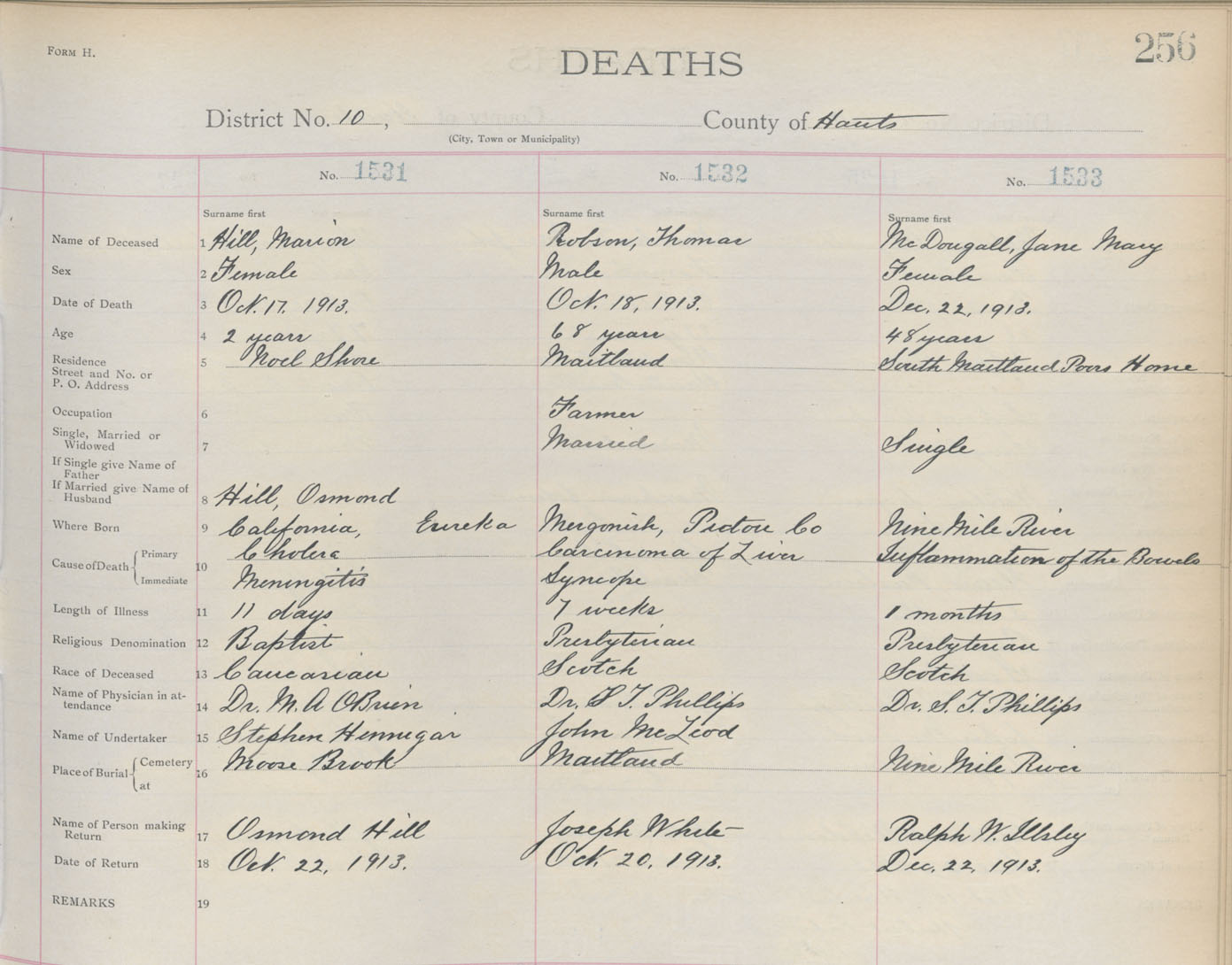 Death Registration: Year: 1913 book: 10 page: 256 number: 1533