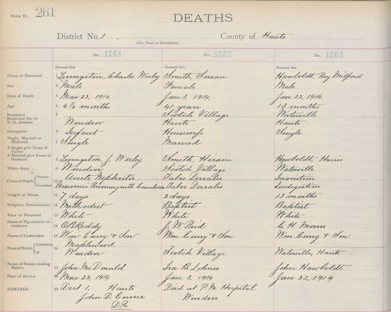 Death Registration: Year: 1914 book: 10 page: 261 number: 1563