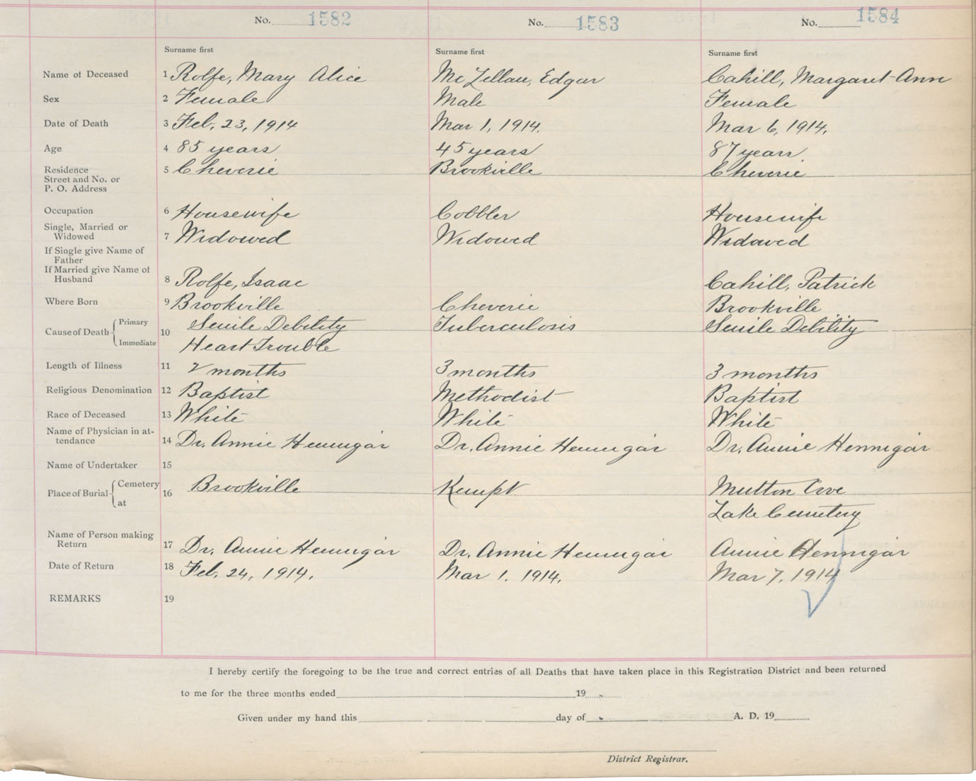 Death Registration: Year: 1914 book: 10 page: 264 number: 1584