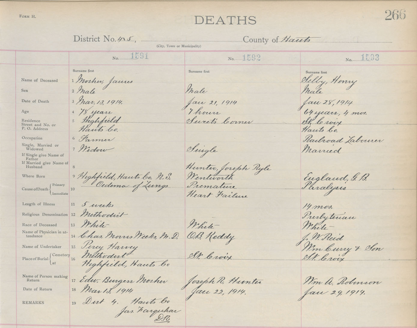 Death Registration: Year: 1914 book: 10 page: 266 number: 1593
