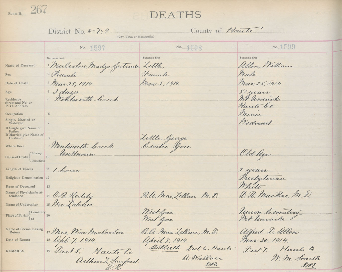 Death Registration: Year: 1914 book: 10 page: 267 number: 1599