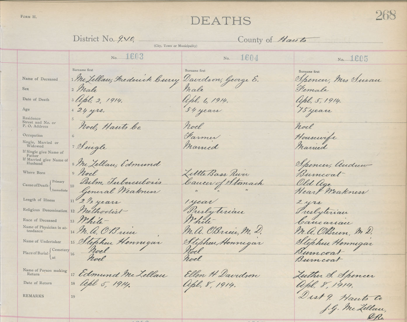 Death Registration: Year: 1914 book: 10 page: 268 number: 1605