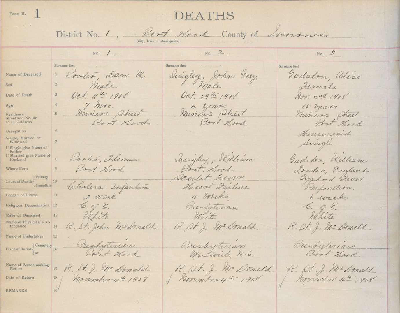 Death Registration: Year: 1908 book: 11 page: 1 number: 3