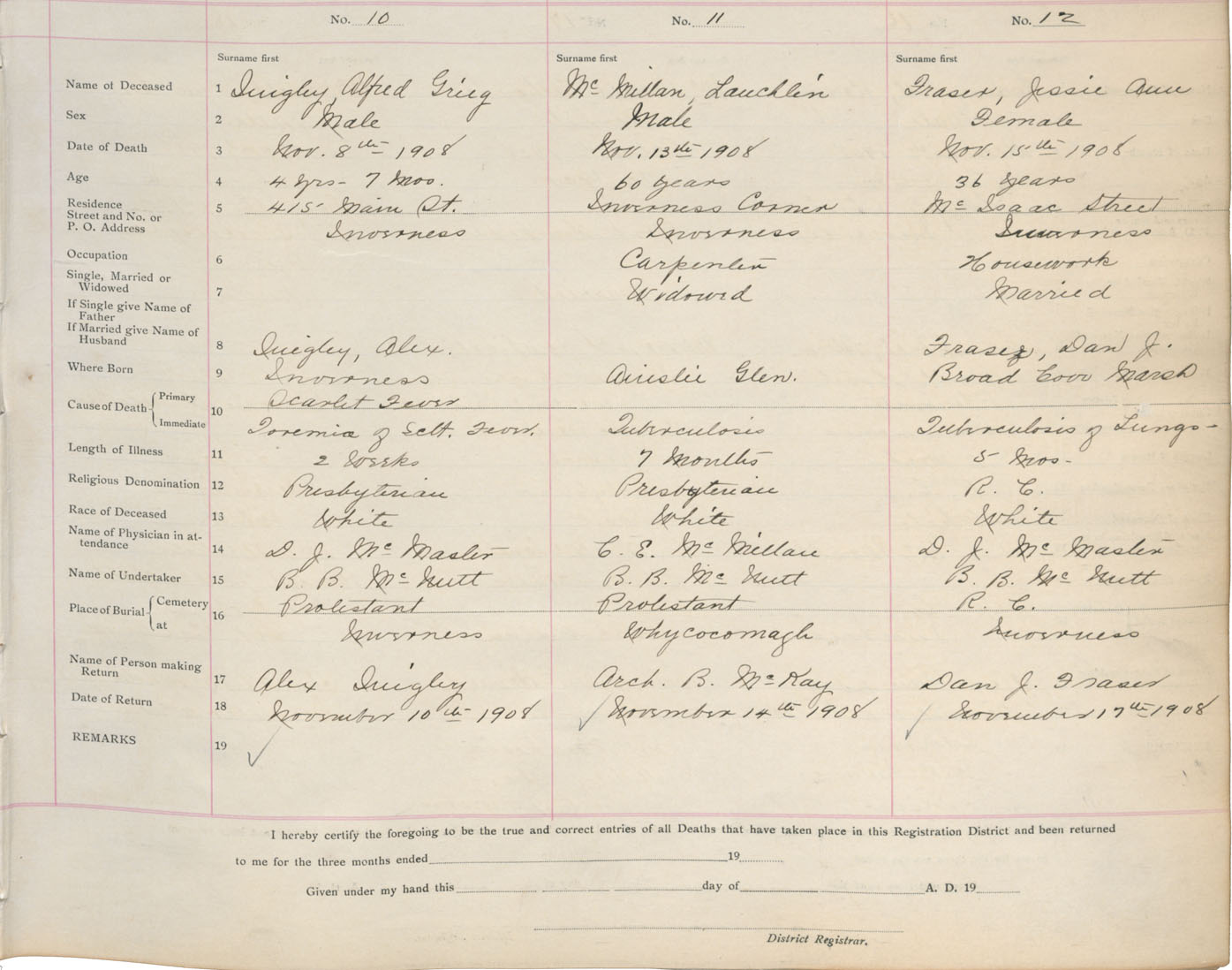 Death Registration: Year: 1909 book: 11 page: 2 number: 12