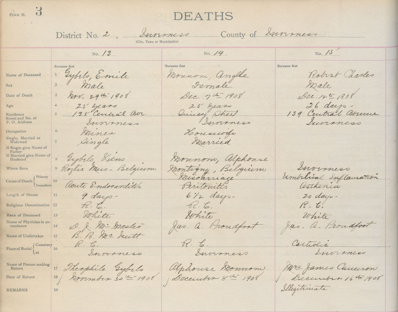 Death Registration: Year: 1908 book: 11 page: 3 number: 15