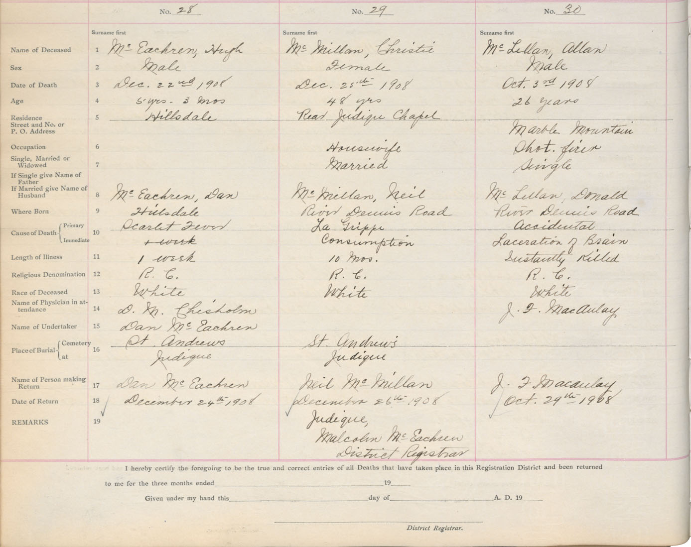 Death Registration: Year: 1908 book: 11 page: 5 number: 30