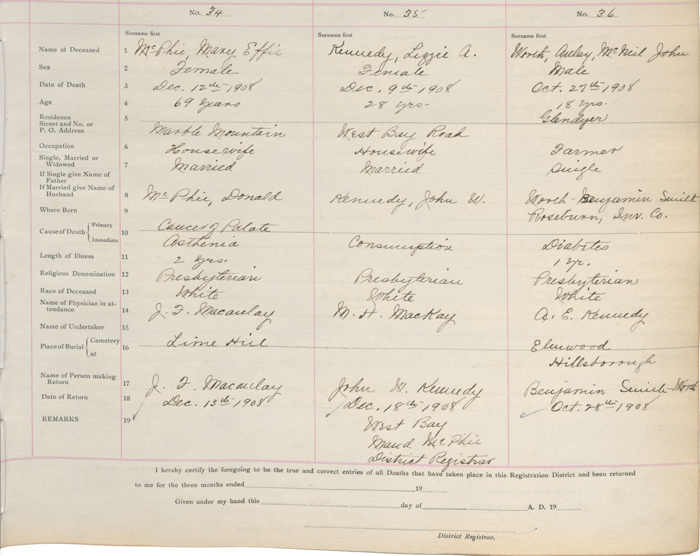 Death Registration: Year: 1908 book: 11 page: 6 number: 36