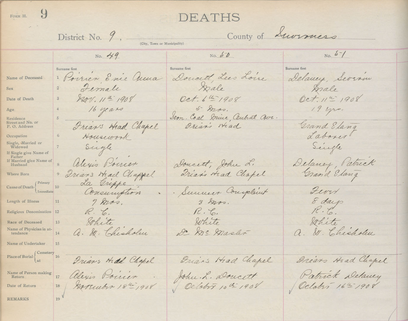 Death Registration: Year: 1908 book: 11 page: 9 number: 49