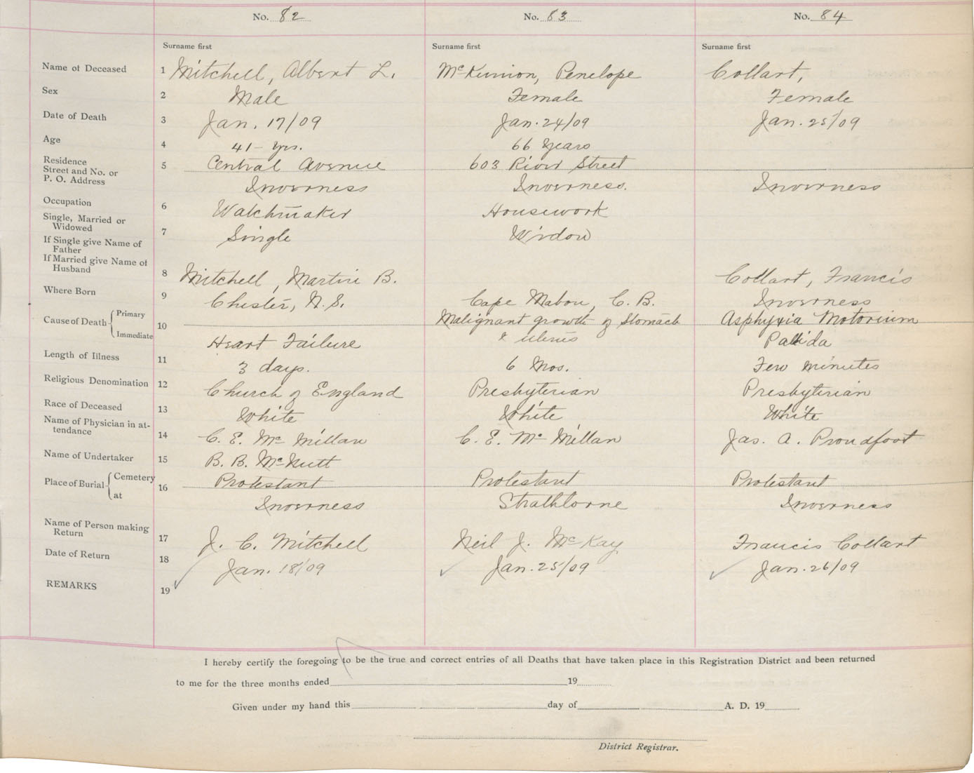 Death Registration: Year: 1909 book: 11 page: 14 number: 82