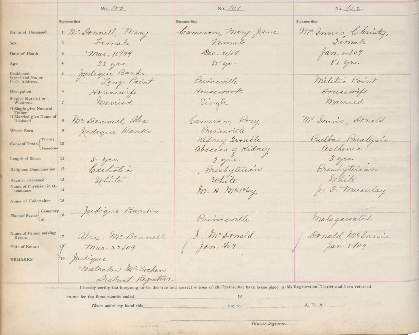 Death Registration: Year: 1909 book: 11 page: 17 number: 100