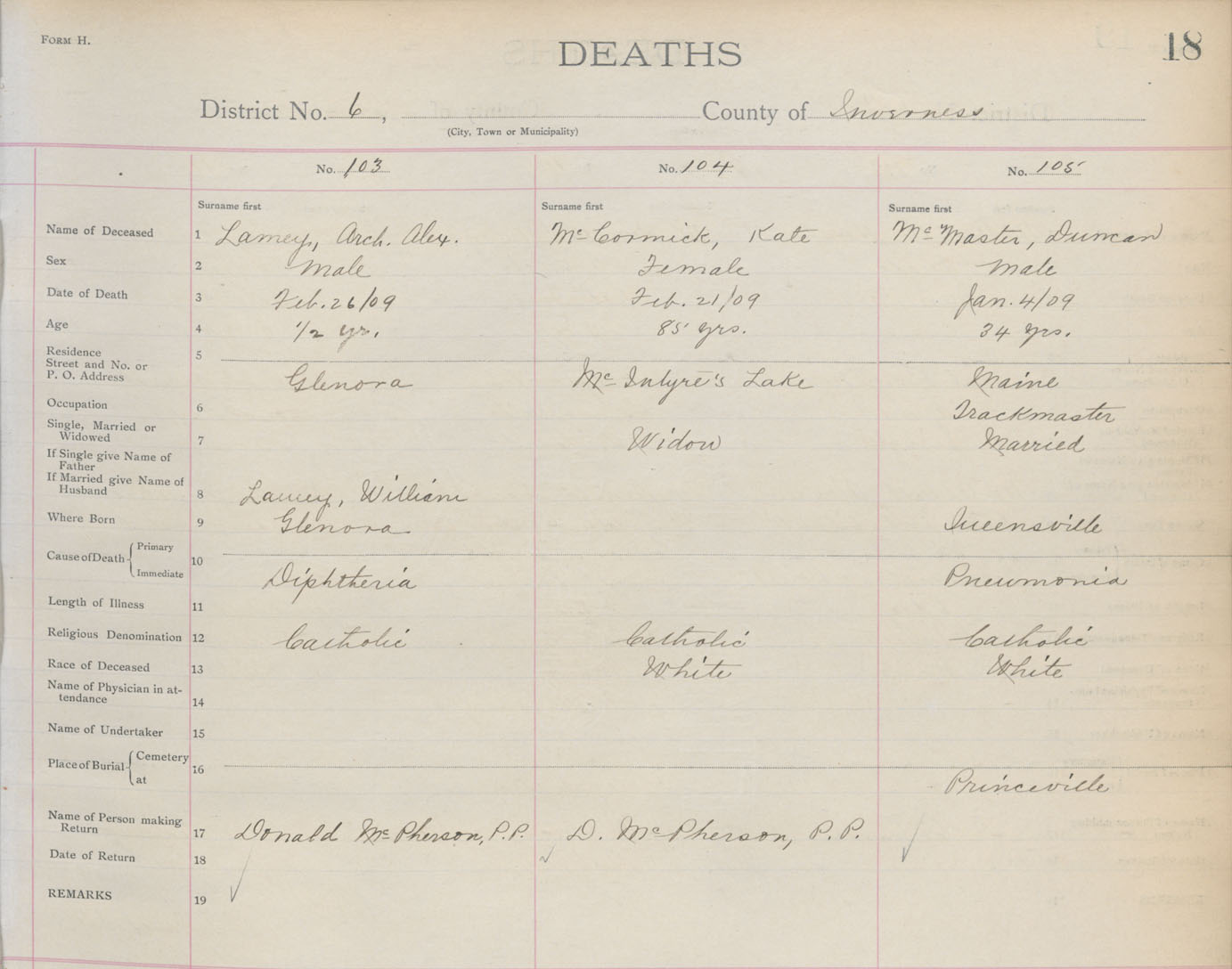 Death Registration: Year: 1909 book: 11 page: 18 number: 103