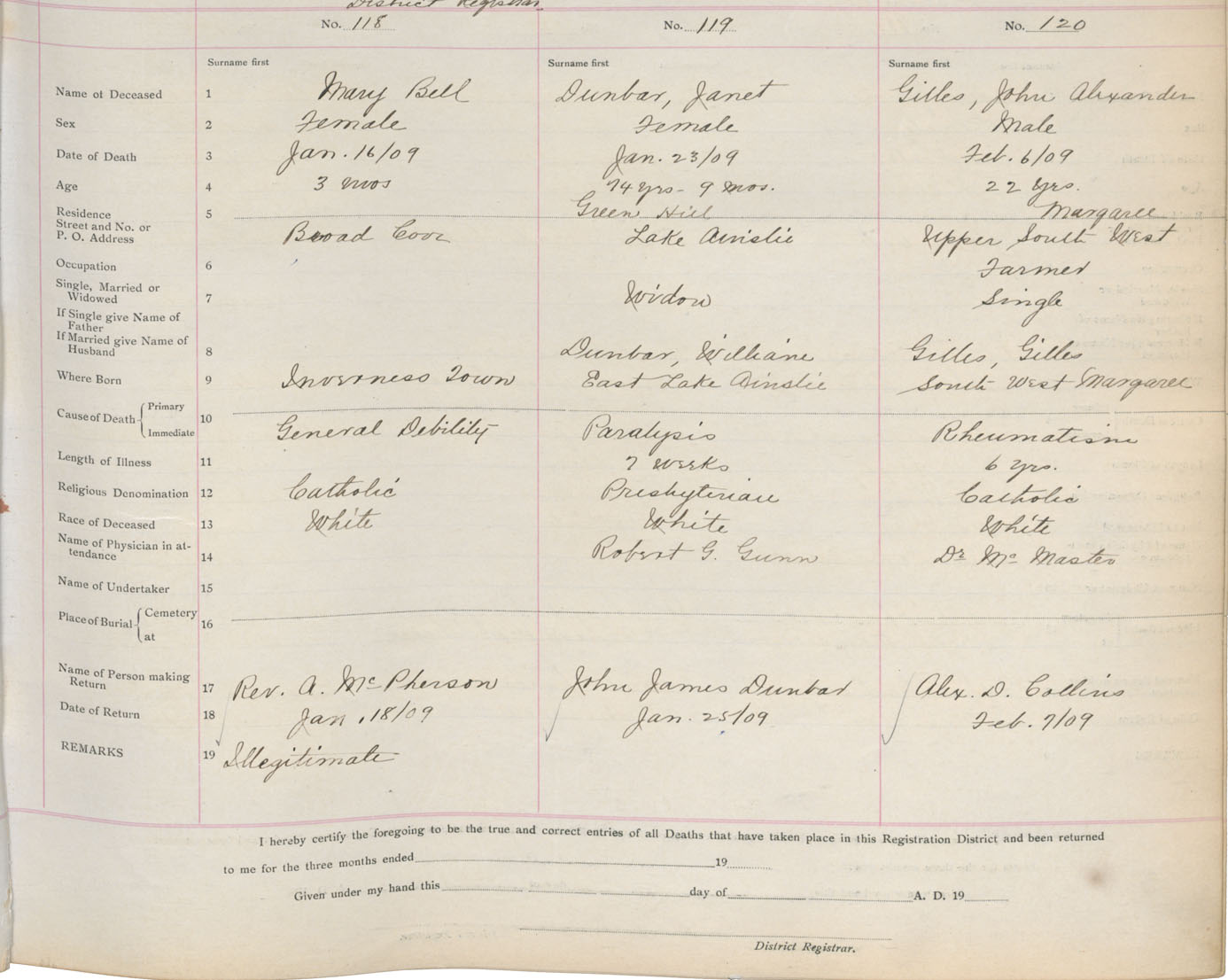 Death Registration: Year: 1909 book: 11 page: 20 number: 118