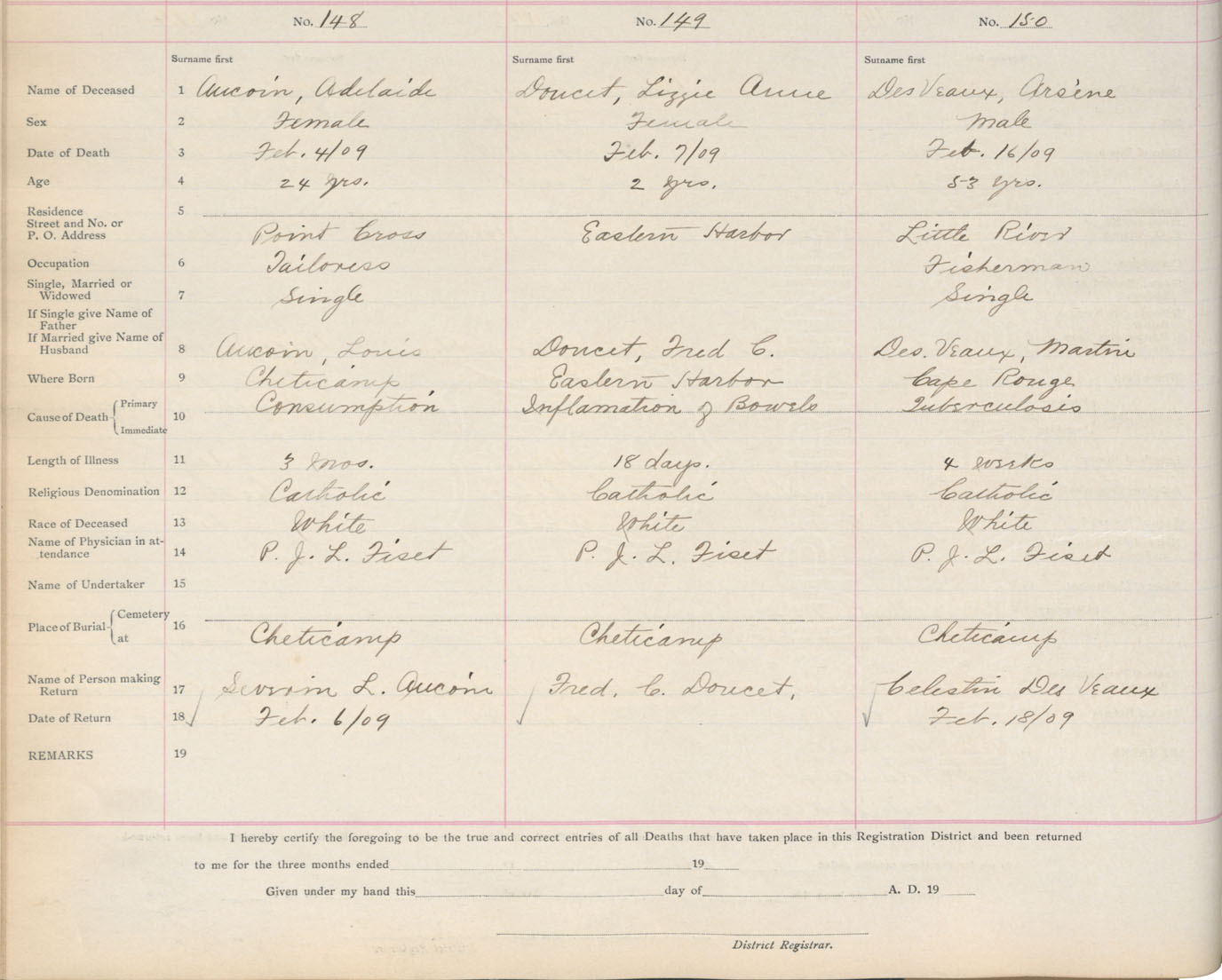 Death Registration: Year: 1909 book: 11 page: 25 number: 150