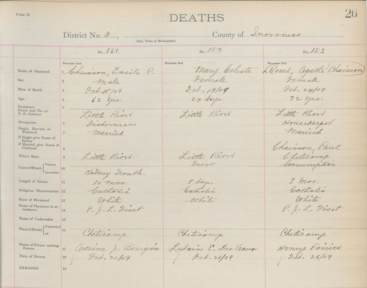 Death Registration: Year: 1909 book: 11 page: 26 number: 153