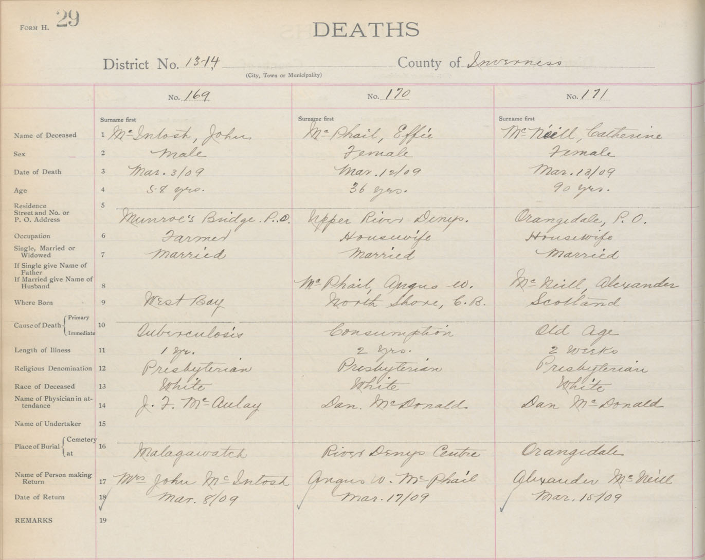 Death Registration: Year: 1909 book: 11 page: 29 number: 171