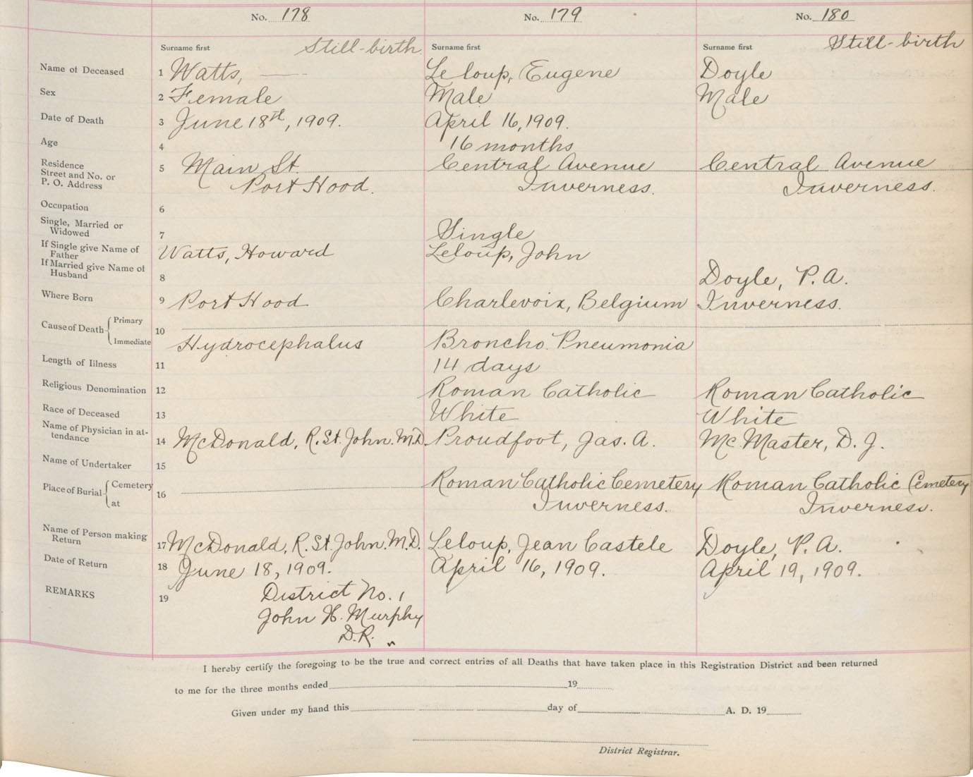 Death Registration: Year: 1909 book: 11 page: 30 number: 180