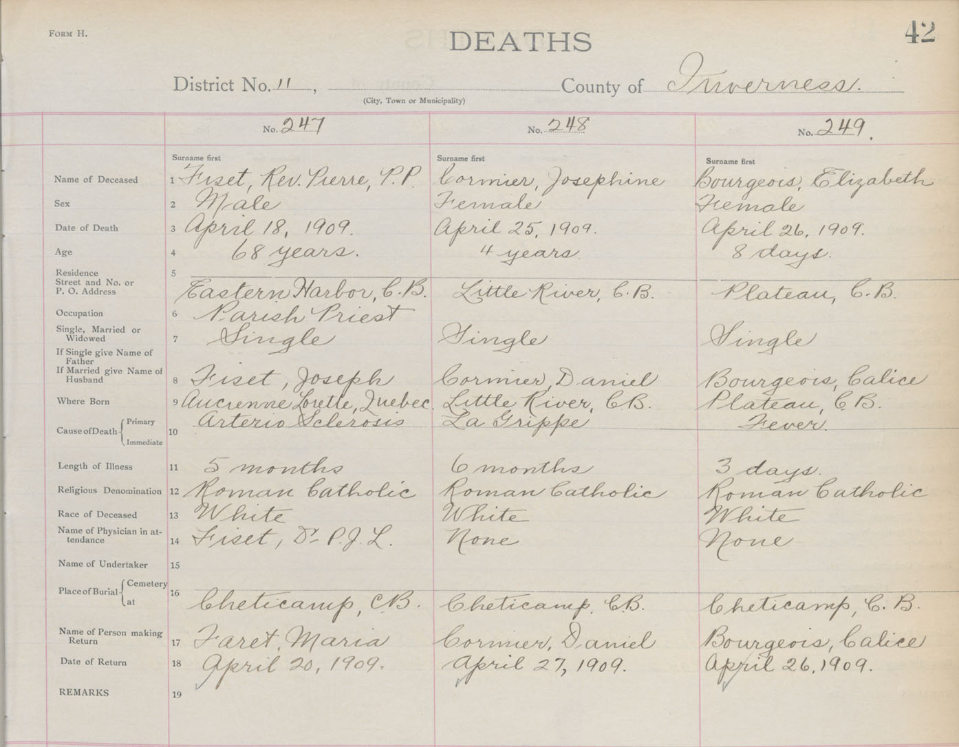 Death Registration: Year: 1909 book: 11 page: 42 number: 249