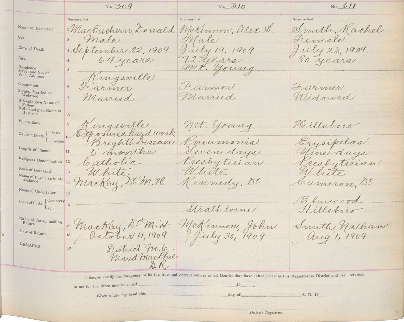 Death Registration: Year: 1909 book: 11 page: 52 number: 309