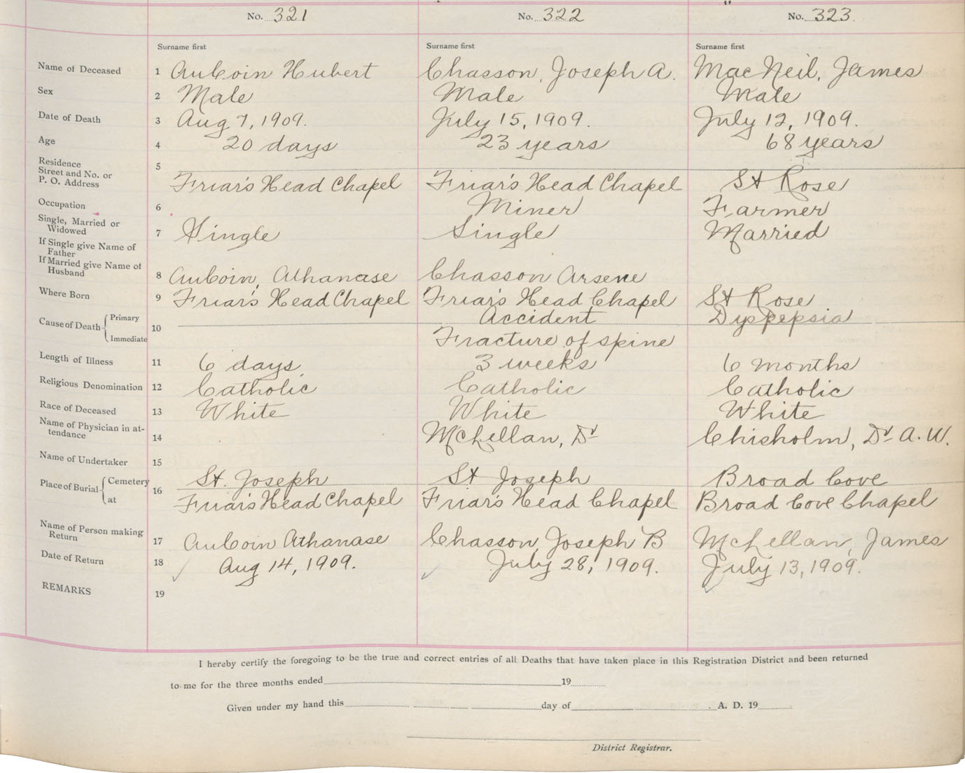 Death Registration: Year: 1909 book: 11 page: 54 number: 321