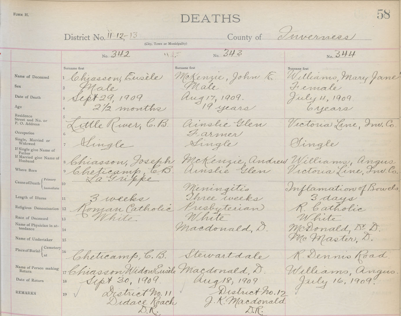 Death Registration: Year: 1909 book: 11 page: 58 number: 342