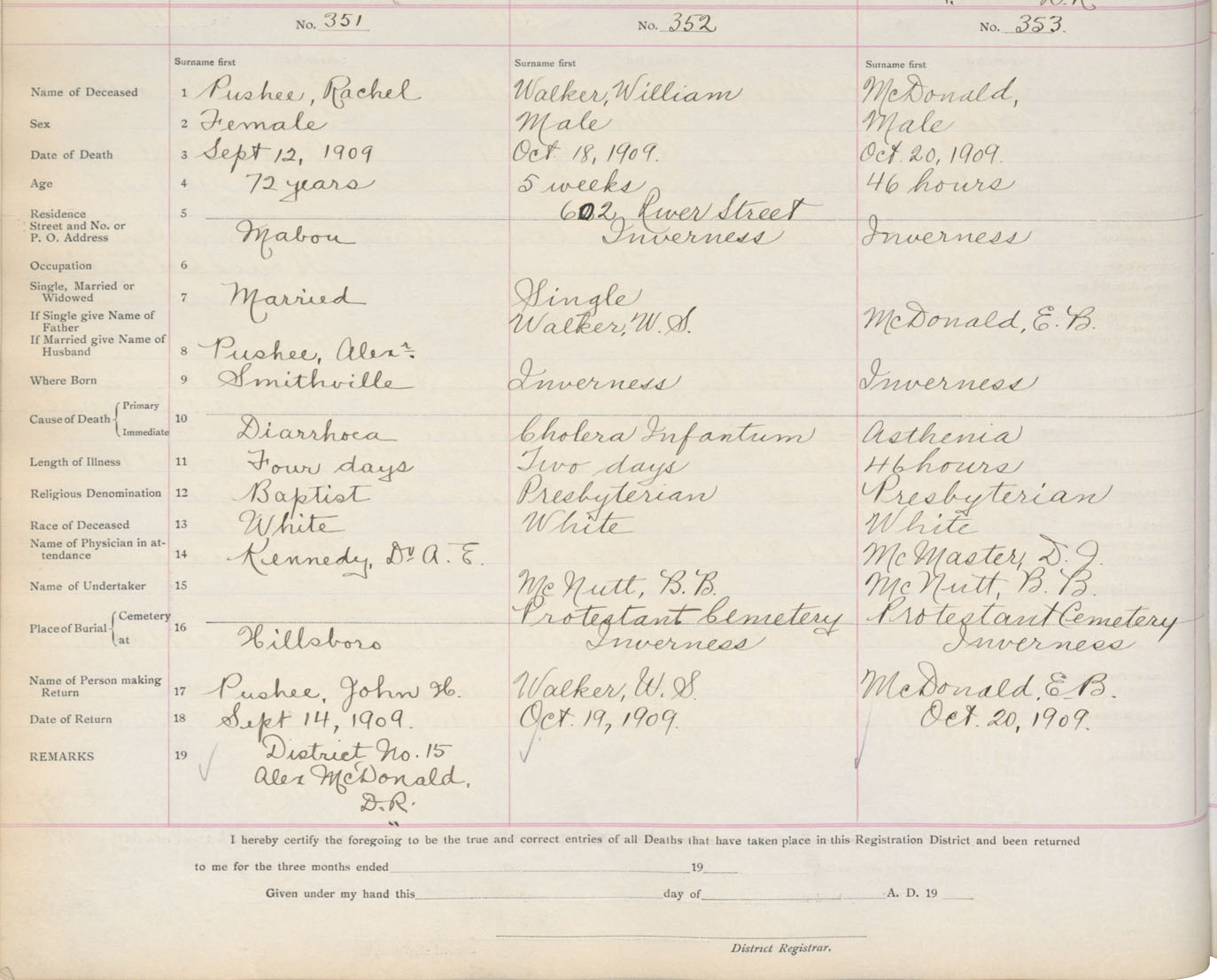 Death Registration: Year: 1909 book: 11 page: 59 number: 351