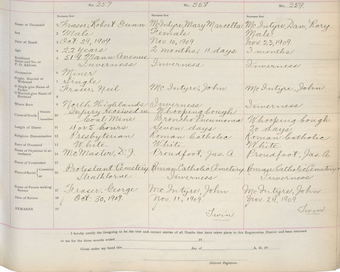 Death Registration: Year: 1909 book: 11 page: 60 number: 357