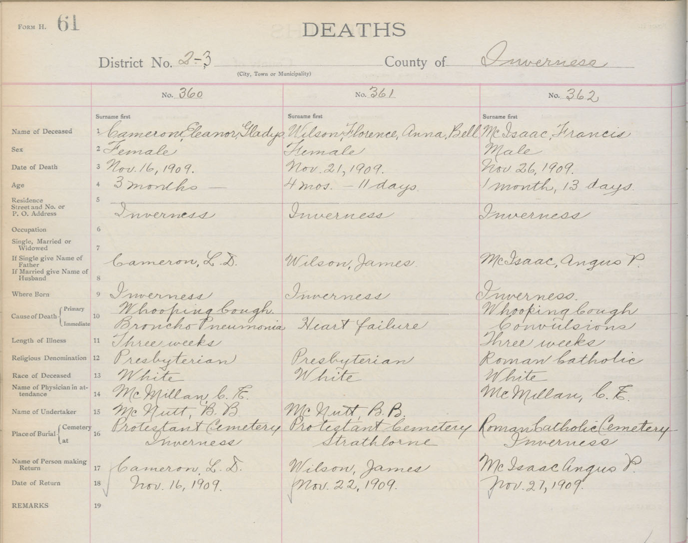 Death Registration: Year: 1909 book: 11 page: 61 number: 360