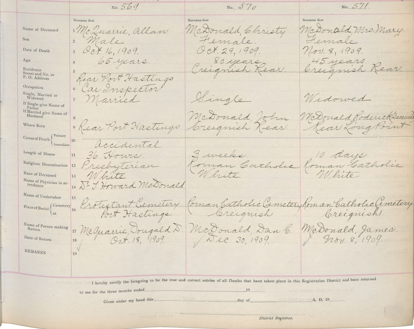 Death Registration: Year: 1909 book: 11 page: 62 number: 569